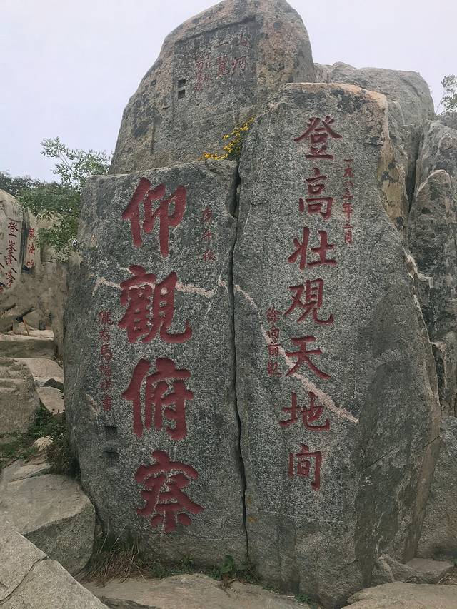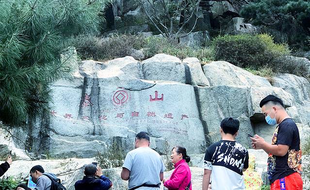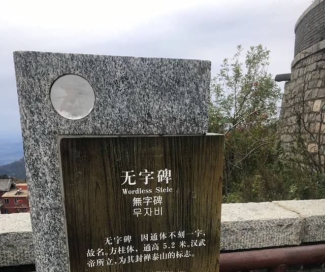 "泰山世界文化与自然遗产"这个石碑是1987年11月19日雕刻的。这个石碑证明了泰山是世界文化与自然遗产之一。中国仅有四处,泰山是其中第三个命名的。