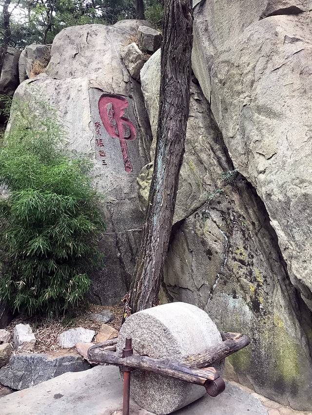 主峰的东侧有一个观日石。传说古人爬山时,很难看到日出,人们齐心协力从山上搬来一块大石头,成了今日的观日点。此刻人们只要站在观日点上,就可看见日出了。