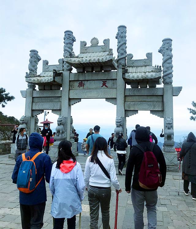 南天门,又名三天门,门分两层,下为拱形门洞,上为阁楼,名摩云阁。此处两峰雄峙东西,天门扼隘口而立,险中出奇,气度非凡。