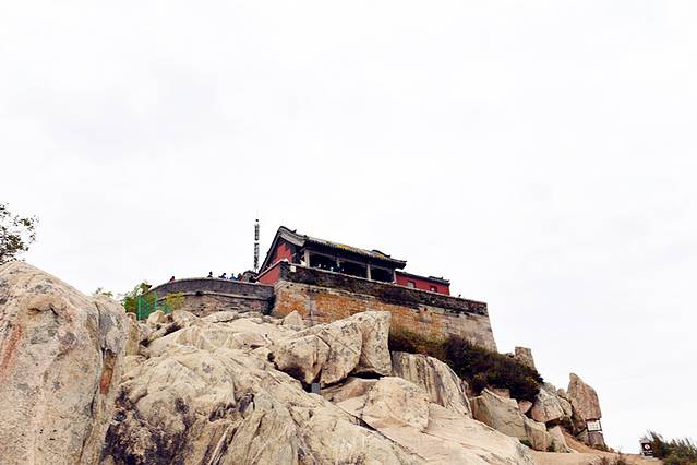 玉皇顶是泰山主峰之巅,因峰顶有玉皇庙而得名。玉皇庙始建年代无考,明成化年间重修。主要建筑有玉皇殿、迎旭亭、望河亭、东西配殿等,殿内祀玉皇大帝铜像。