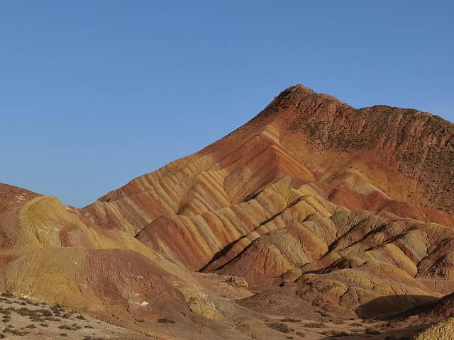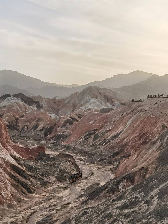 人太多了每个看台之间都要坐大巴,都得排队,因为没去到第四个看台不知道景色如何,看到最美的丹霞居然是在门口入口坐大巴车开往一号看台的路上那个色彩真的很美,当时以为后面的会更美就没有拍照谁知道就再也看不到了。七彩丹霞的门票也是可以用两天的,第二天可以再进去一次看日出。