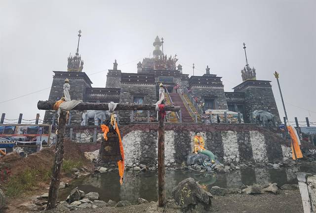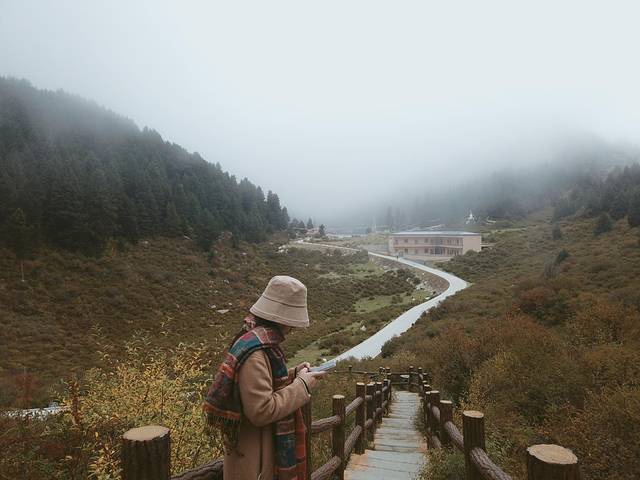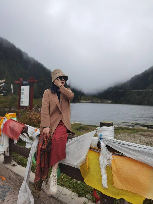 今天天气不好,下着小雨,达宗尔湖盘山而上位于海拔三千米的地方,我们到的时候已经下午四五点了,气温大概只有几度,雨后云雾缭绕,空气闻起来冰冷又清新,这大概就是山色空蒙雨亦奇的样子吧。这个地方很小众没有很多游客,只有我们一行人和零星几个游客。我们同行的人也一些人觉得这个地方很无聊很小也不够美,但我却很喜欢这种大自然最原始的样子没有被过多游客打扰的自然的美, 湖周围悬挂着的经幡让这个不大的湖看起来神秘又萧瑟。