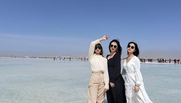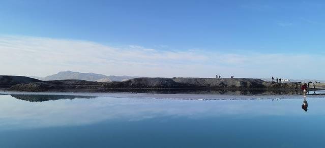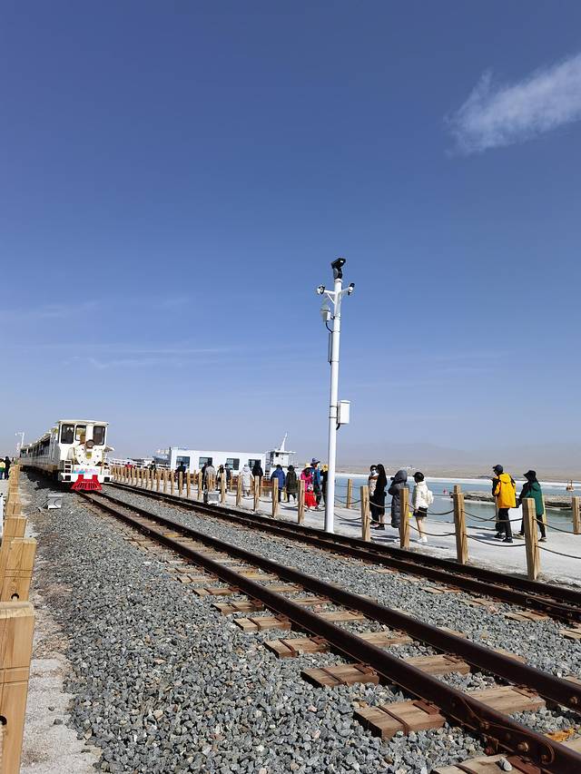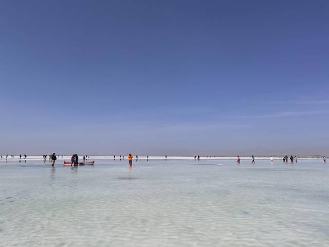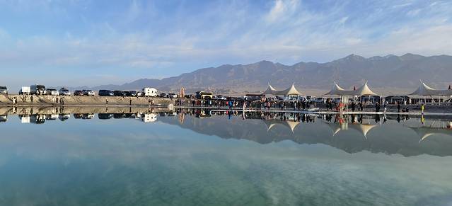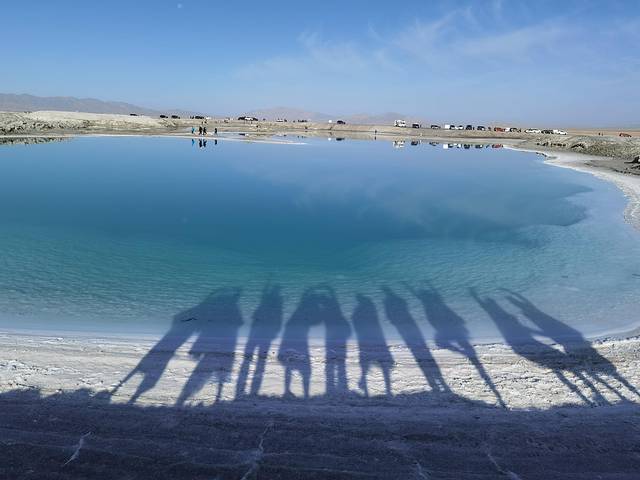 早上七点半出发开往茶卡盐湖,到了茶卡之后排队一个多小时才坐上小火车直接到达湖中央。这是这么多天游客最多的一个景点,全是穿着红裙子的姐姐们站在湖里拍照,不建议大家穿红色来茶卡拍照了。 进湖要租鞋套也要排很长的队伍。 因为人太多了所以也很难拍出没有人镜面的效果。大家可以做小火车进湖然后走出来,因为我们一群人买了来回的火车票好多都浪费了没有坐到回程的火车。