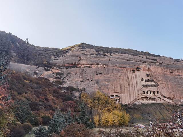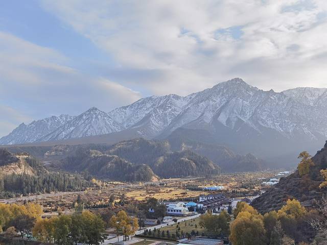 下午是马蹄寺,一个小众一点的景点,寺庙建在悬崖壁上,没有太多的游客整个就散发着一种遗世而独立的气质。站在山上往外看远处的雪山和森林看起来仿佛身处瑞士。最深处的佛窟里居然还有保留着有颜色的壁画,有些甚至都能看清面部细节,感觉比敦煌的壁画保存的更好,但没有导游也不知道到底是什么年代的壁画。百度也查不到具体的介绍。