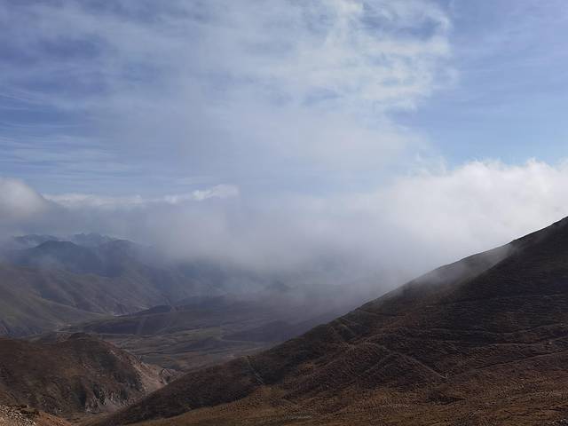 早上八点半出发去拉鸡山,山顶海拔四千米,今天早起的时候还是多云的一天,盘山而上一路雨雾缭绕虽然这边的山都光秃秃的没有树但深褐色的山壁环绕着云雾真的仿佛身处仙境。到达山顶之后那个不知道是城堡还是寺庙的建筑看起来好像权游里的建筑。我们一群人在这里也待了很久大家都沉迷于买披肩和编头发。
