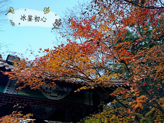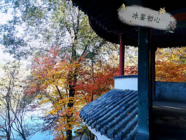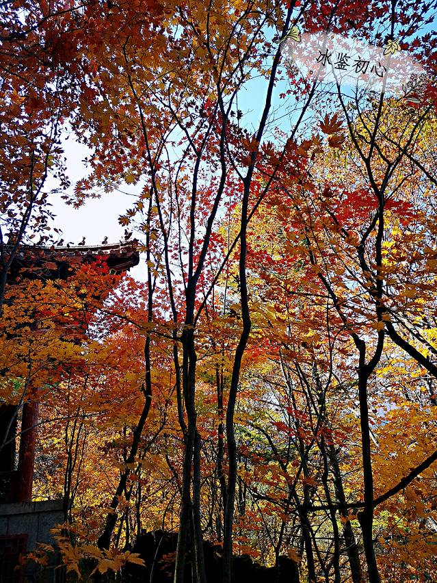 在水洞拍到的最喜欢的一张照片,红枫、楼阁。