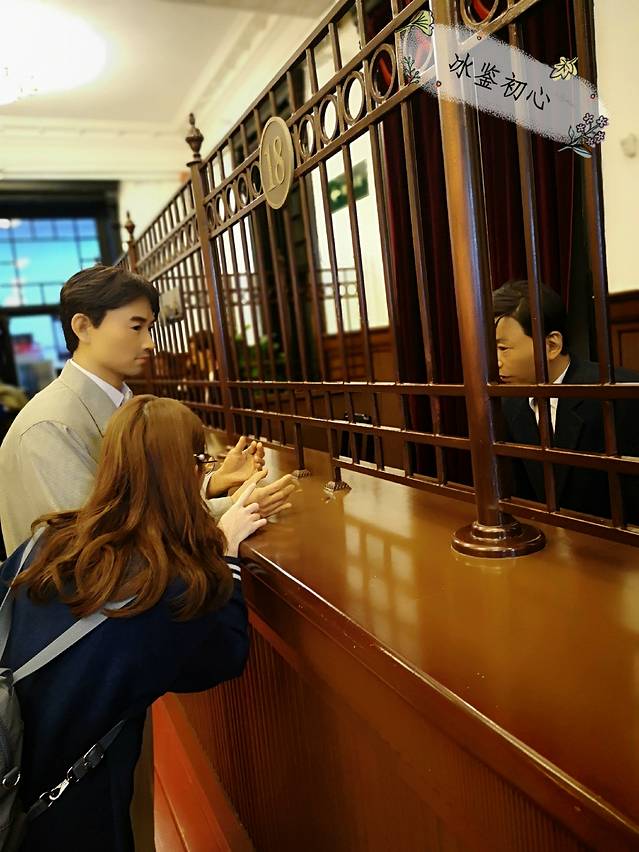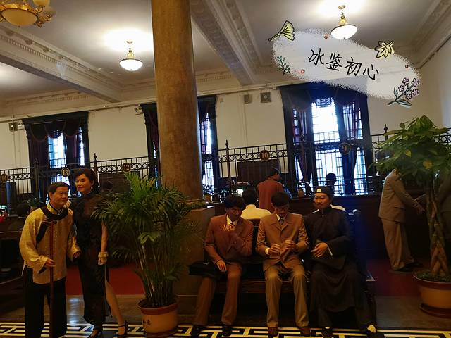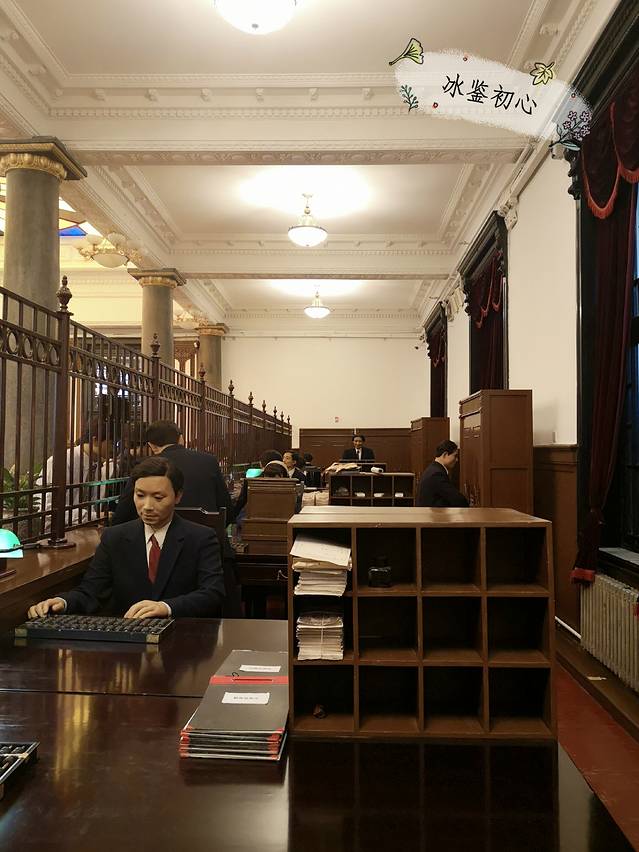 一进门的时候,愣了一下,以为这怎么怎么热闹,还扮演上了,一大厅都是人,这些蜡像形象地演绎了当时的工作办事状态。