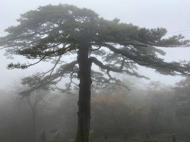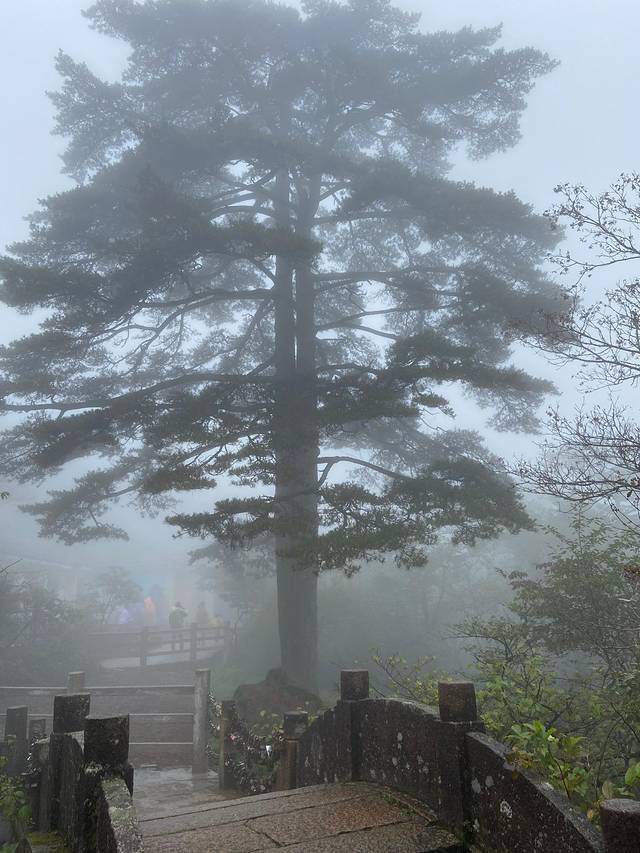 为了行程不那么累,爬一会上去能看到送客松、迎客松,迎客松处可以远眺天都峰。