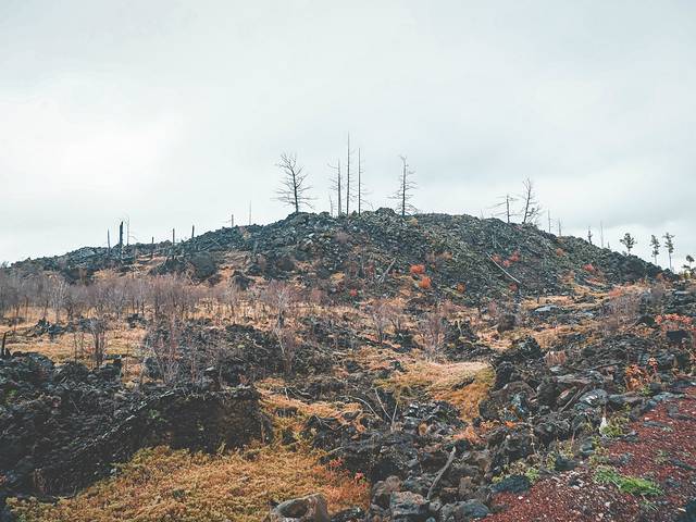这里是纯天然的火山熔岩博物馆,拥有 亚洲 最大近期死火山玄武岩地貌,公路两侧没有笔直的树木,两侧多为凸凹不平带苔藓丑陋的石头,也偶见一两颗偃松在这片熔岩石头缝中生根发芽,在不是土壤的火山石上也能如此顽强,拼命生长这就是生命的力量,似乎周围恶劣的环境都不可以阻挡它对求生的欲望。
