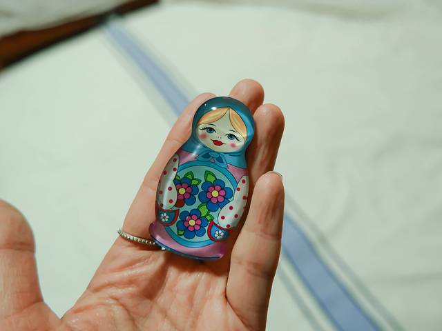 1、 冰箱贴收藏爱好者,不论走到哪里我都会为自己买一个冰箱贴,选了眼睛非常迷人的套娃。