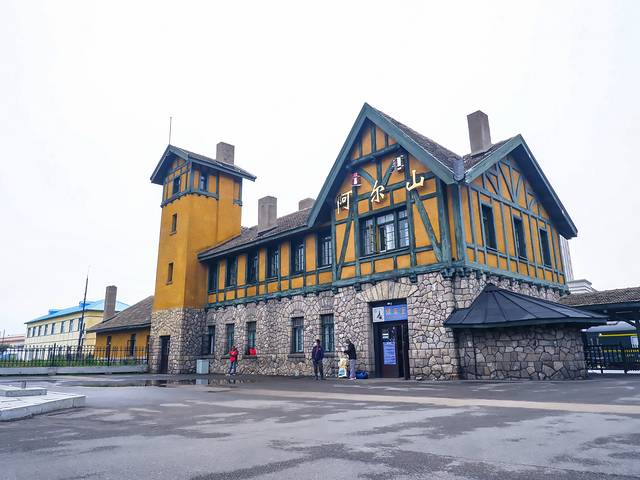 阿尔山火车站是全中国最小最精致的火车站,小到什么程度,比一栋别墅大一点点,候车室是有的,只不过很迷你,但也能五章俱全该有的都有。火车站建于1935年,竣工时间1937年,是 日本 关东 军驻扎时期的产物,是一幢东洋风格的尖顶二层日式建筑,一层外壁是用花岗岩堆砌的乱插石墙,楼顶用赭色水泥涂盖,建筑以墨绿色与姜黄色相间,如今整个火车站保存完好仍在使用,已经成为 内蒙古 的重点文物。这座历史遗址目前还在接待全国各地每天前来 阿尔山 旅行的人们,曾经的它应该目睹过很多站台人们的聚散与分离吧。如果想要拍出效果一定要在落日前来,运气好可碰见火烧云同框。