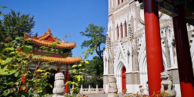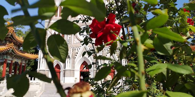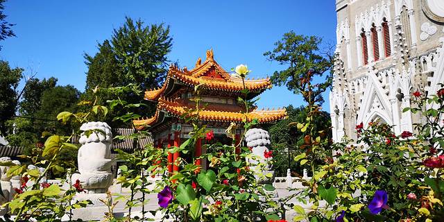 中式的小亭子和西式的教堂