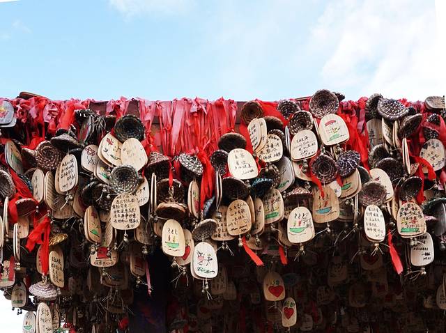 丽江古城拥有众多的景点,但是地标却是大水车,大水车周围也被鲜花装饰起来,古朴的大水车围在各色鲜花中也一点不输气质,而旁边则有一个供旅人许愿的地方,挂满了用东巴文字的许愿牌,上面写满了每个人最真挚愿望和祝福,我们也跟风在这里留下了自己的心愿。