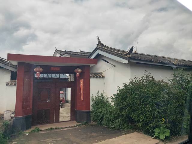 路上的时候后悔了听从司机的话走了乡间小道,因为路上弯弯曲曲,有些路会比较宽阔而有些路很狭小勉强足够两练车同行有些地方还有点坑洼,如果会晕车的人肯定受不了这样的折磨,不过这路上能看见很多民族特色的建筑物,颇有点江南水乡的感觉,不过司机说这些是纳西族的特色建筑,灰瓦白墙,近处看到房子的屋檐很有意思,都是飞檐翘角的,屋檐细细的翘得高高,如同古时候的宫殿,这路上别有一番韵味。