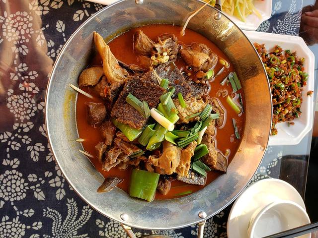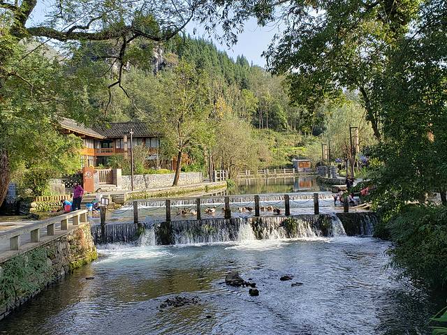 经过晚上的讨论,第二天我们还是准备去租车。来铜仁一定要吃这里的羊肉粉,我们问到了附近最好吃的羊肉粉,叫凉都羊肉粉,在中国银行隔壁,店面很小,但里面很大,客人也很多,果然没有失望,味道很好,小菜随意加。回来的路上,看到菜市场,又逛了下。水果蔬菜新鲜又便宜,我们买了点水果吃。后打车去火车站租车,是通过一嗨租车网租的。然后开往朱砂古镇游玩。铜仁市区开车到朱砂古镇大约40分钟,门票现在打5折,套票140元,从美团上购是138元。朱砂古镇的前身是矿区,该项目依托矿山公园悠久的朱砂文化和丰富的自然景观,围绕丹砂文化艺术主题来建造。里面最吸引人的就是它的玻璃栈道,胆大的人可以来回多走几遍,欣赏远处的风景。看网上对此景点评论不一,我们来的时候天气晴朗,整体感觉还是不错,值得一游。