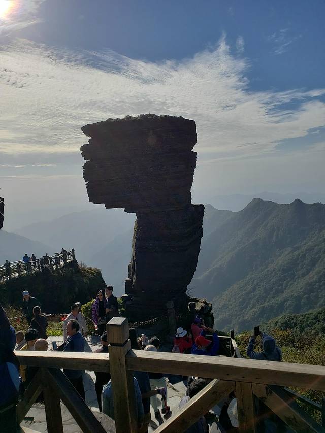 早上6点半出发去梵净山,先开车到了梵净山脚下的云舍土家第一村,里面参观是免费的,但停车收费。一处宛若世外桃源般的自然村落,慢生活、悠闲、舒适、淳朴这些统统都是云舍村的代名词,外界的繁华和喧嚣和它没有任何关系,这边风景独好。村子里面有住宿,餐饮,真想在此停宿一日。10点出发到了梵净山景区,景区外面有人招揽停车生意,说比里面便宜,20元。我们预约的时间段是下午1点,现在是上午工作人员不让进,到了11点后发现门口排的全是人,旅游团和散客那叫一个多。 想着进门应该会好一点吧。结果进到第二个关卡又是排队半小时以上,到了观光车继续排队。索道排队。总之就是排队一日游。排队花了二个小时左右,四点左右到的山顶,但一站在红云金顶,豁然开朗,前面所有的不快此刻都觉得值得,梵净山,太美了。远方白云朵朵,头顶天空之镜蓝天,驻足远望,那一望无际的原始森林,层林尽染,五彩斑斓,真是美得震撼人心,那是超级漂亮,你真的会感叹大自然的鬼斧神工。看过了梵净山,你会发现其他山都很逊,因为都无法和梵净山媲美,它真是大自然赏赐的绝无仅有的一座,风景特别特别好。同志们朋友们,此生一定要来一趟呀,但是一定要安排好一天的时间,当然天气一定要晴朗,提前预约,早点进山,越早越好,还有衣服要穿保暖,手套一定要带好,手机要保持有电,要不然最美的风景不够拍。
