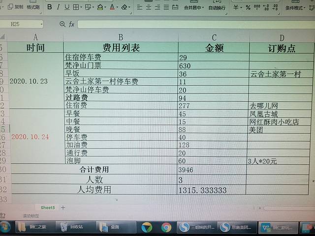 附上费用明细供大家参考,费用人数3人。