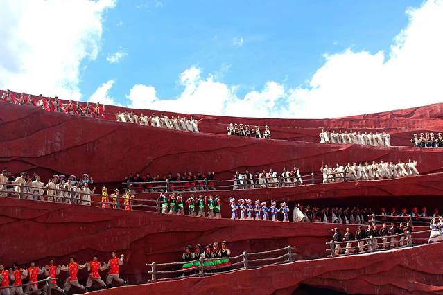 演出由10几个少数民族几百人完成,大多数演出者为当地的居民。