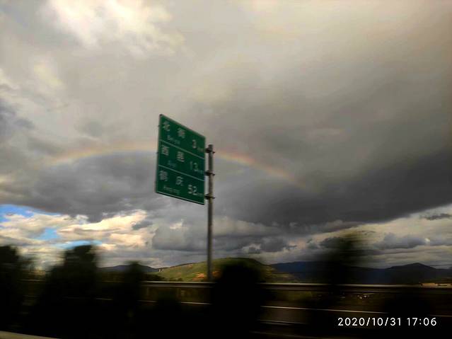 在路上下起了小雨,一会雨又停,刚巧遇到了彩虹