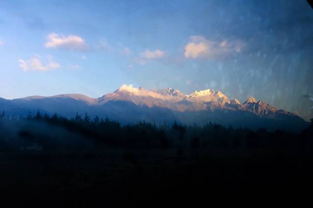 从景区返程的时候就已经傍晚了,要和雪山说再见了~