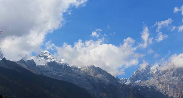 从照片就能看出雪山天气的多变。拍了几张照片的时间,原本晴朗天空瞬间就阴沉下来。