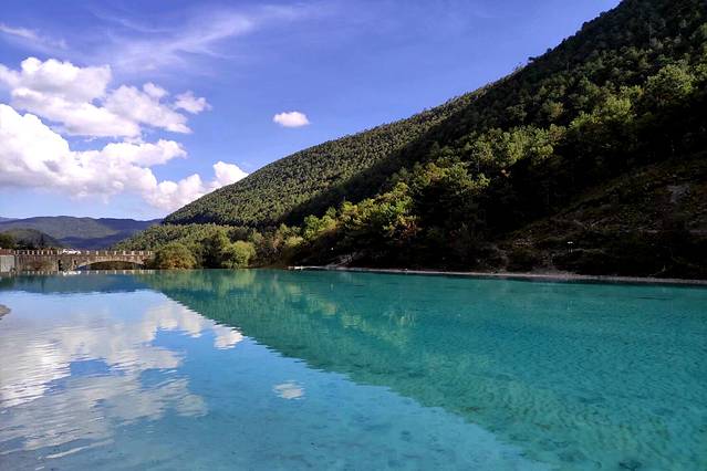 湖水太清澈了,白云像飘在湖面上,我真的不是走进画里了吧