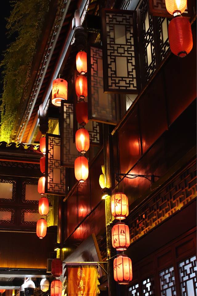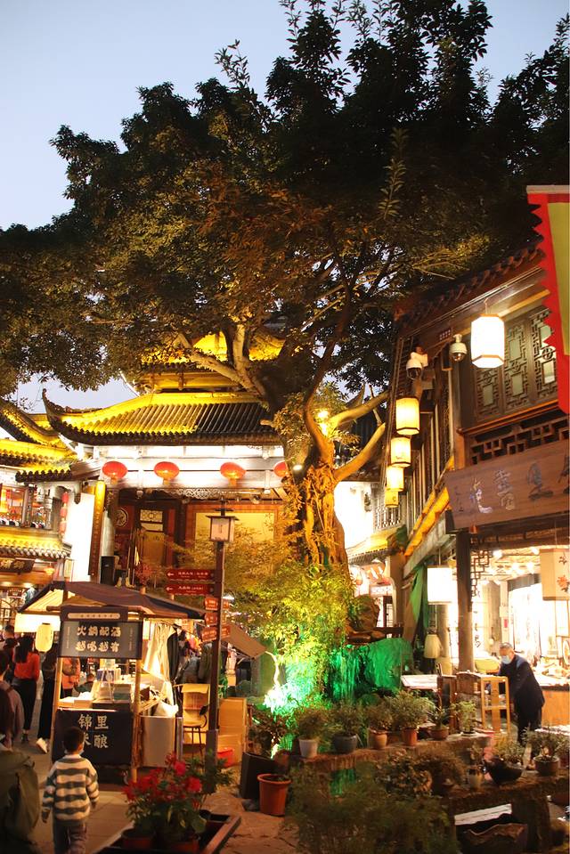 到锦里的时候已经快七点了,武侯祠就跟锦里挨着,这会儿武侯祠也已经关门了,所以武侯祠肯定是去不了了,那就好好逛一下锦里吧。