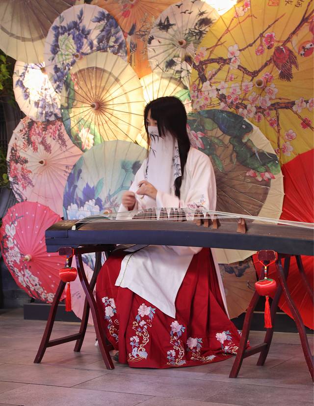 弹古筝的女子,去的时候她准备下班走了,留下一身倩影
