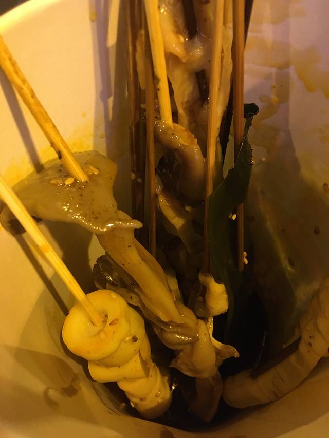 路上遇到的钵钵鸡,虽然已经很饱了但也还要吃,不然下次来就不知道什么时候了!其实就是串串香,但是那个酱汁有一股草药的味道,有点苦,也不知道是不是我己经很饱了还是它本身味道不怎样,有点不想吃了哈