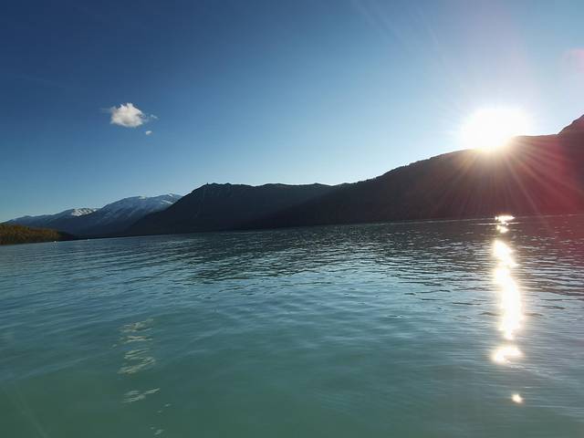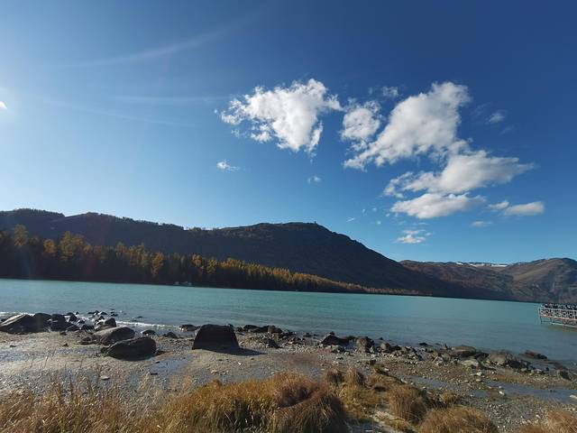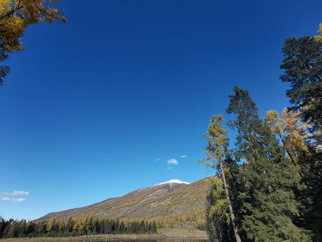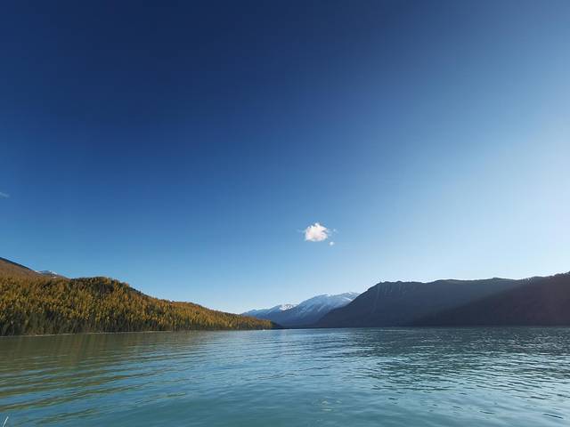 沿途的风景真的很美,天空很蓝,湖水也很蓝。