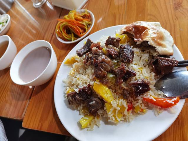 手抓饭--非常美味,还有免费的奶茶喝和小菜,从来没有吃过这么好吃的手抓饭和奶茶。