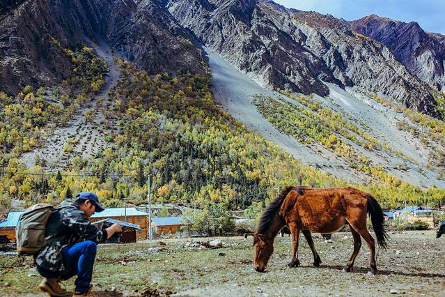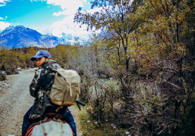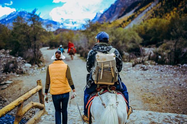 从村口到冰川,需要徒步2公里左右,不想走路的话,也可以选择骑马进入。往返100块钱,10~20分钟左右就能到冰川了。
