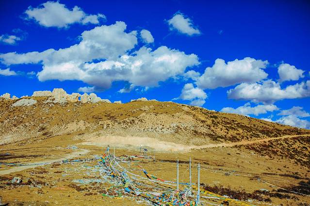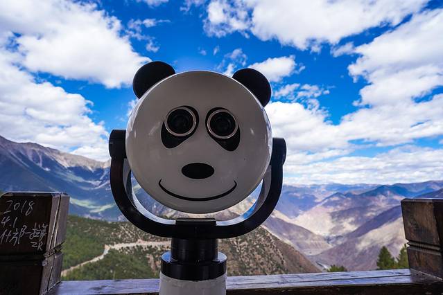 站在垭口上,可以清楚地观望山头两侧的风光,一侧的邦达草原,平缓舒坦,白云悠悠;另一侧属于怒江河谷,下山处便是川藏线最著名的险关之一——72道弯。