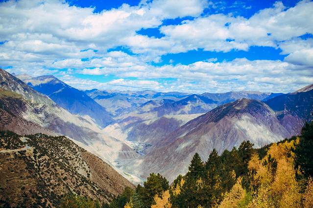 然乌,意为“尸体堆积在一起的湖”。听起来有些惊悚,而真正到了那里,给你的绝对是如临仙境的惊喜!去往然乌湖路上的秋色,秒杀很多内地的景区。