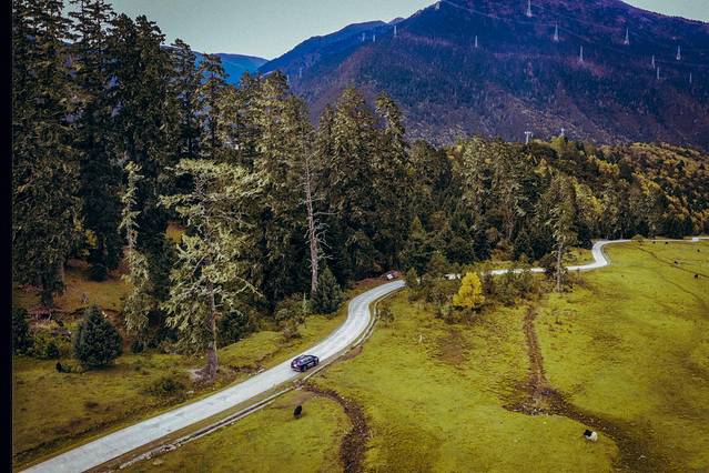 我们的座驾的出现划破这悠然的宁静,流线型的车身驶过曲径通幽的小道,有种穿越古今之感。