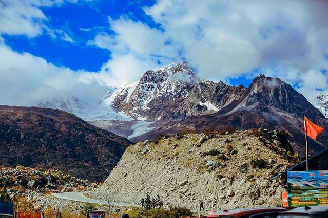 门口打的招牌是“中国最美的冰川”。不过在观景台,只能这样遥望雪山和冰川,的确很震撼。