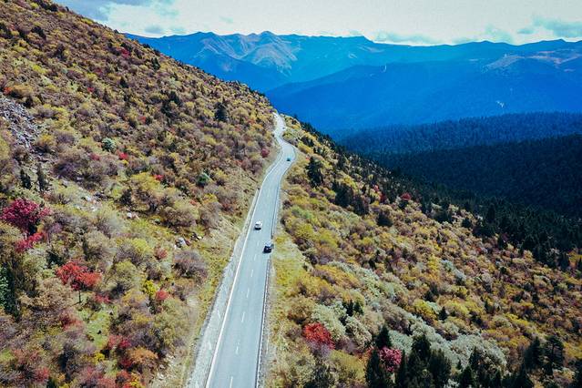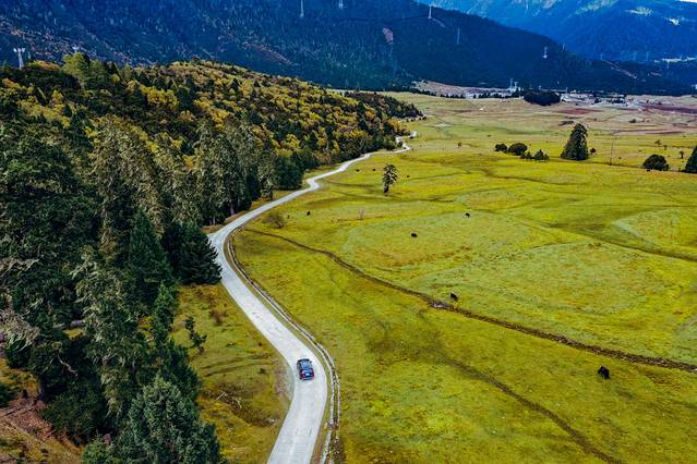 10月的色季拉山,峰峦叠嶂,层林尽染,整个山谷都像是一个调色板,混杂着纷繁的色泽。汽车行驶其间,犹如游走在莫奈的油画里。