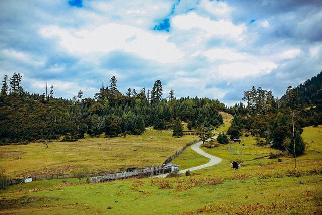 鲁朗镇边上有很多的牧场,以前都是免费的。现在也许游客多了,村口都有老太太守着要门票。不过还好,只要10块钱1个人,就能把车开进来,自由地玩耍。相较于西藏动辄数百块的景点来说,真的良心很多。