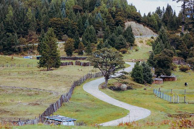 南迦巴瓦峰下的小镇,这里的牧场村庄,仿佛世外桃源一般。