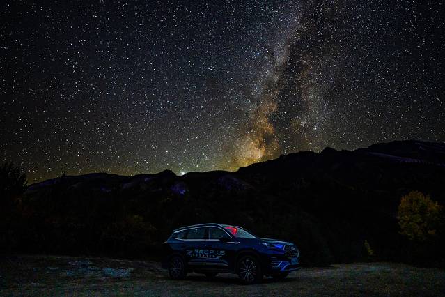 我们最后还是来到了然乌镇边上的一个湖边,也能看见银河。只是挨着318国道,所以光污染比较严重,经常都有来往的车辆把天空照得很亮。