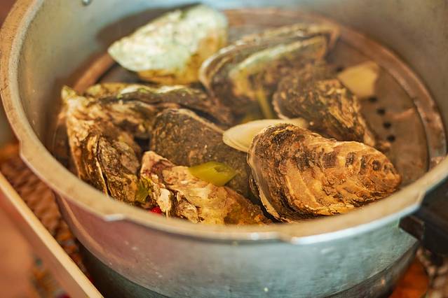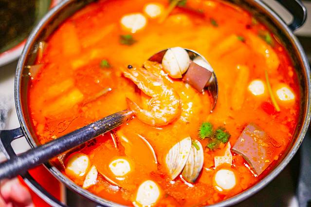 一锅端上了,生蚝、鲍鱼、大虾…各种新鲜的食材,用天然发酵的地瓜醋来熬煮,再佐以特色的海草提香,酸甜香辣,开胃诱人,这浓郁香醇的味道,喝一次就忘不掉了。