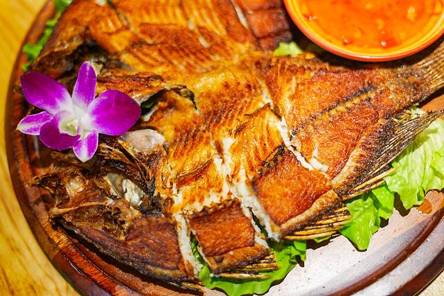 💫黎家冲浪鱼,黎族做法,整条鱼从中间片开,被炸制成金黄色,焦黄酥脆,配有甜辣酱,口味鲜甜美味。