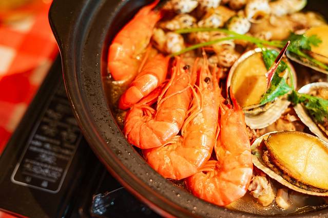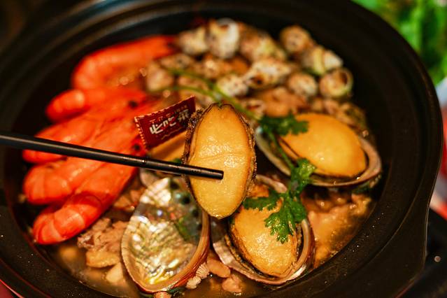 鲍鱼文昌鸡煲,必吃!鲍鱼Q弹,口感恰到好处,文昌鸡依旧入口软嫩,还有大虾、海螺等等,食材满满,诚意满满!