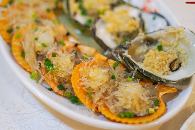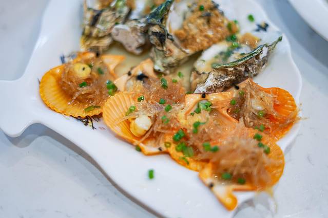 👉蒜蓉粉丝蒸扇贝和生蚝,贝肉饱满,丝丝爽滑,搭配食用,美味加倍。