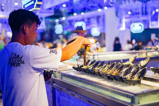 👩🏻🍳直接排队进入,丰盛的海鲜大餐开始啦!