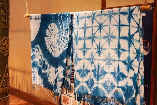 这一次,我们还体验了扎染的技术,“染”是指纱线染色,包括美孚方言妇女在白色经线上扎结成所需的花纹,再染成黑白斑花的经线,然后用彩色纬线编织出色彩斑斓的筒裙图案。