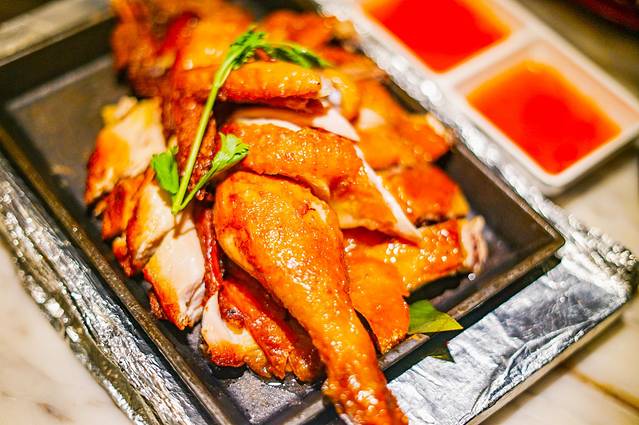 🐔椰香文昌烤鸡,选用东郊椰林长大的椰子鸡,从皮到肉到骨,都散发出浓郁椰香。外焦里嫩,肉质酥嫩,搭配辣酱,超赞!
