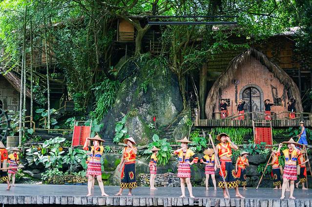 大型实景民族歌舞剧《槟榔•古韵》被列为“国家文化出口重点项目”。这是一场自然风光与人文演出完美结合的跨越千年的视觉盛宴,在槟榔谷文化村,这场大型实景民族歌舞剧《槟榔古韵》每天都会上演4场,场场爆棚。