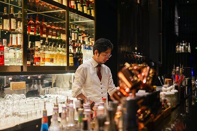 这里有美食,有美酒,吧台的酒柜墙绚丽夺目,抬头望去,闪闪星空灯,更是让这里熠熠生辉。
