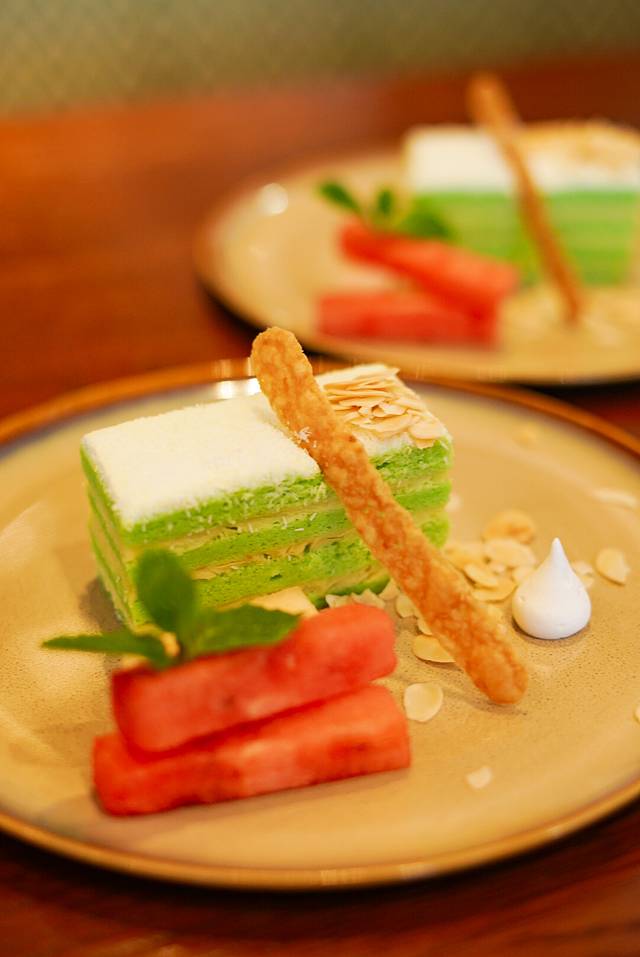 最后再来一块颜色美丽的班兰蛋糕,度假的餐桌就是要这样滴!